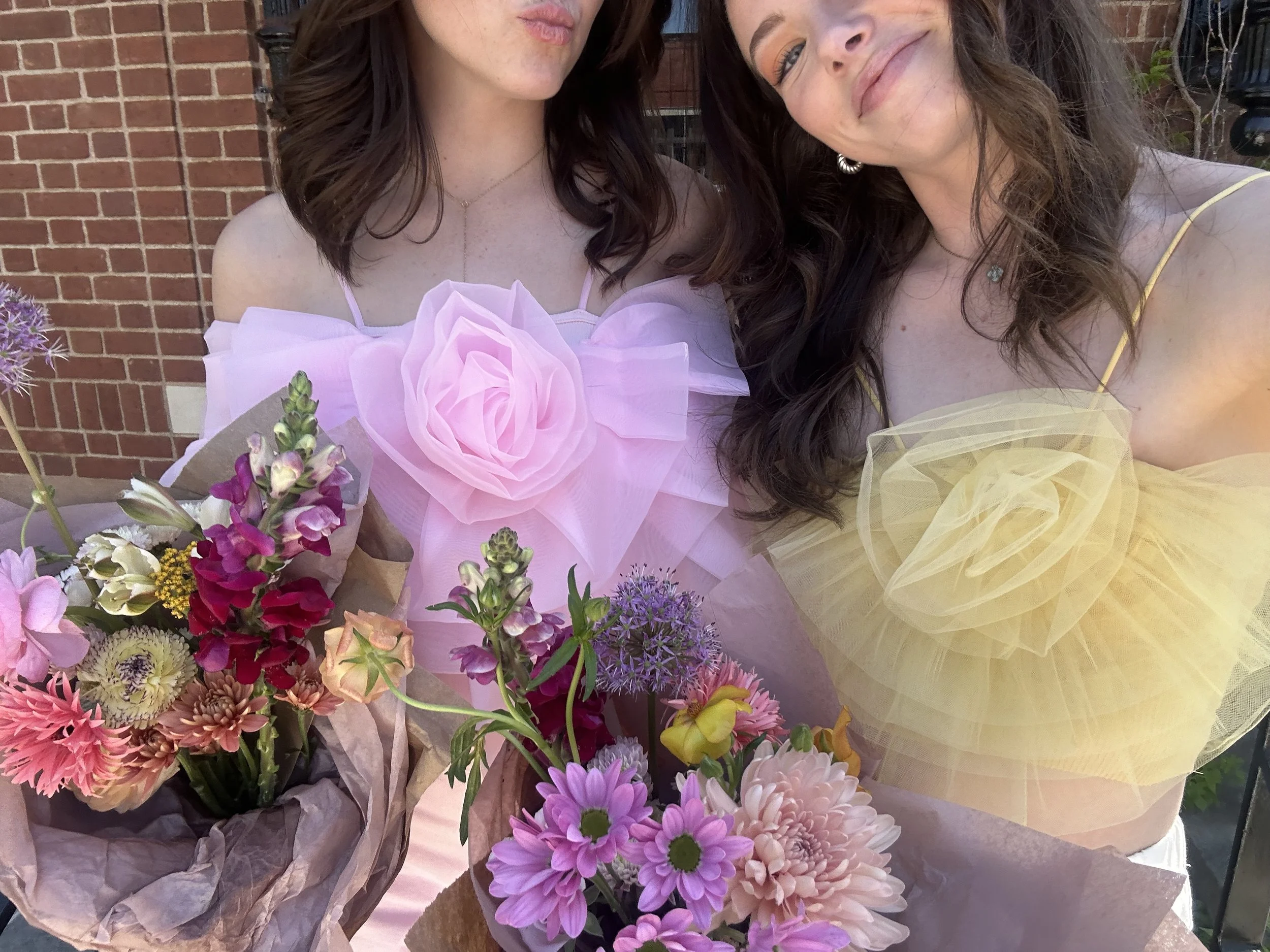 Brunch & Blooms at the Fayetteville Square! Riffraff + local businesses at the square came together to host a Sunday morning event a few weekends in April. Our fav of the event was the beautiful Meus Floral bouquet we got, as well as the honey at City Supply. Our tops matched the occasion of course, from Flax Maker.